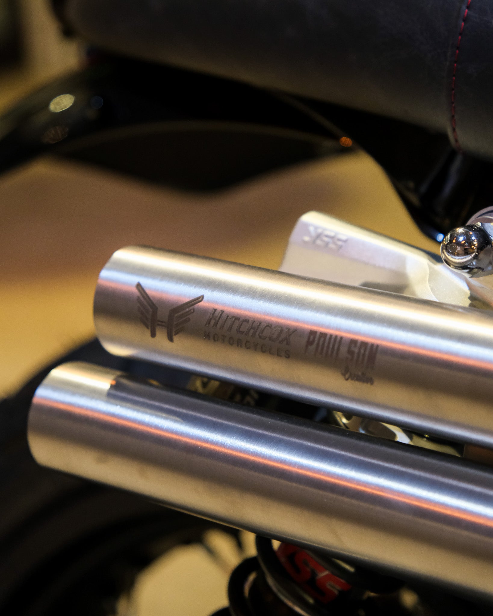 Exhaust Note: Shown with two options - low boy exhaust it was first build with, then later upgraded to the 1 off Hitchcox High up 1 into 2 shotgun pipe