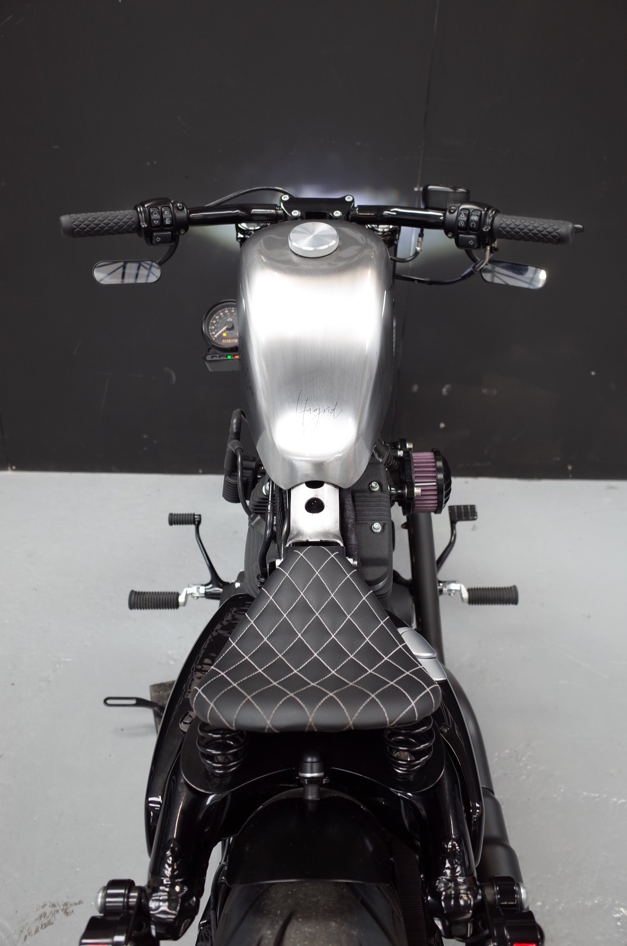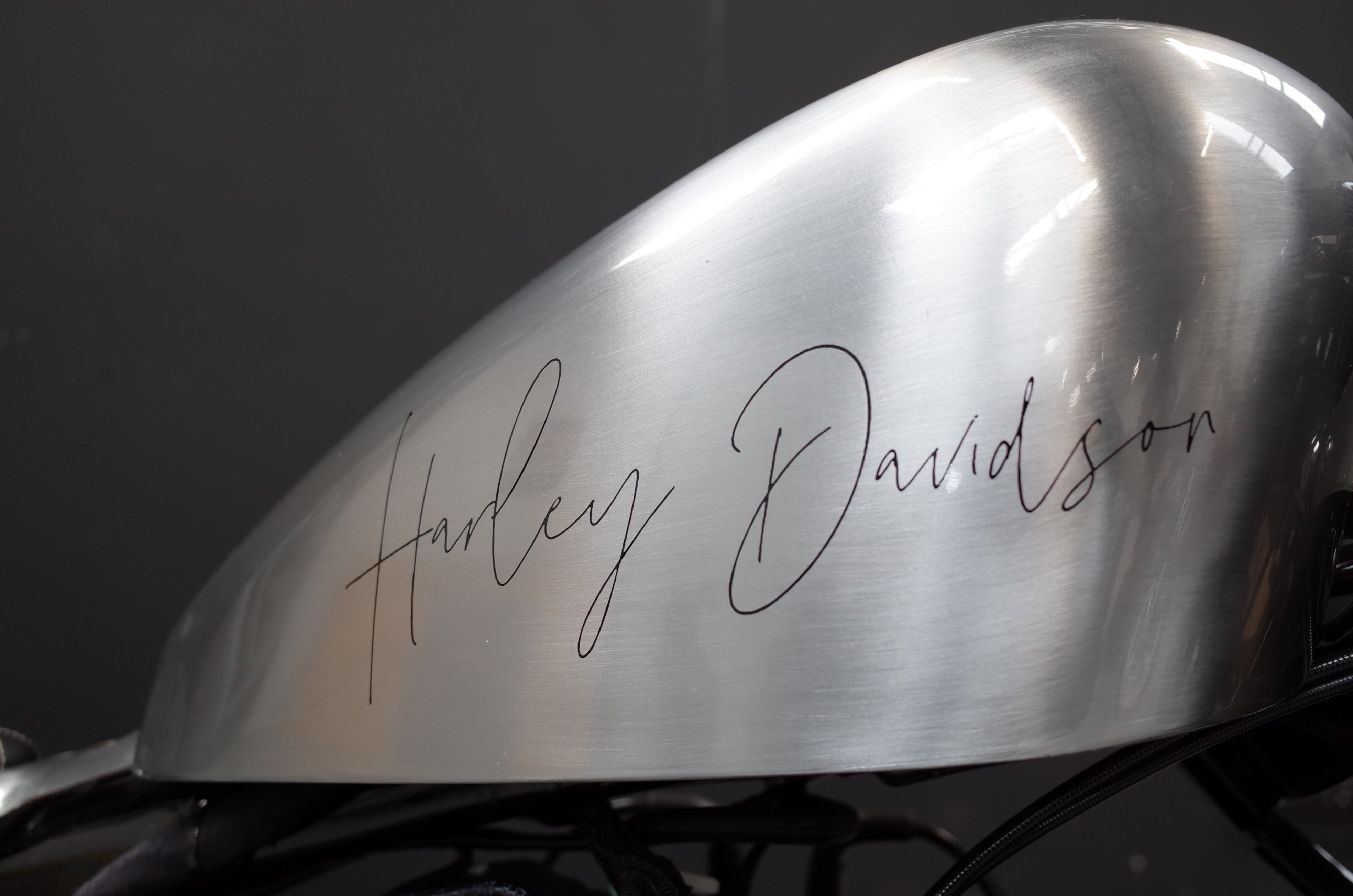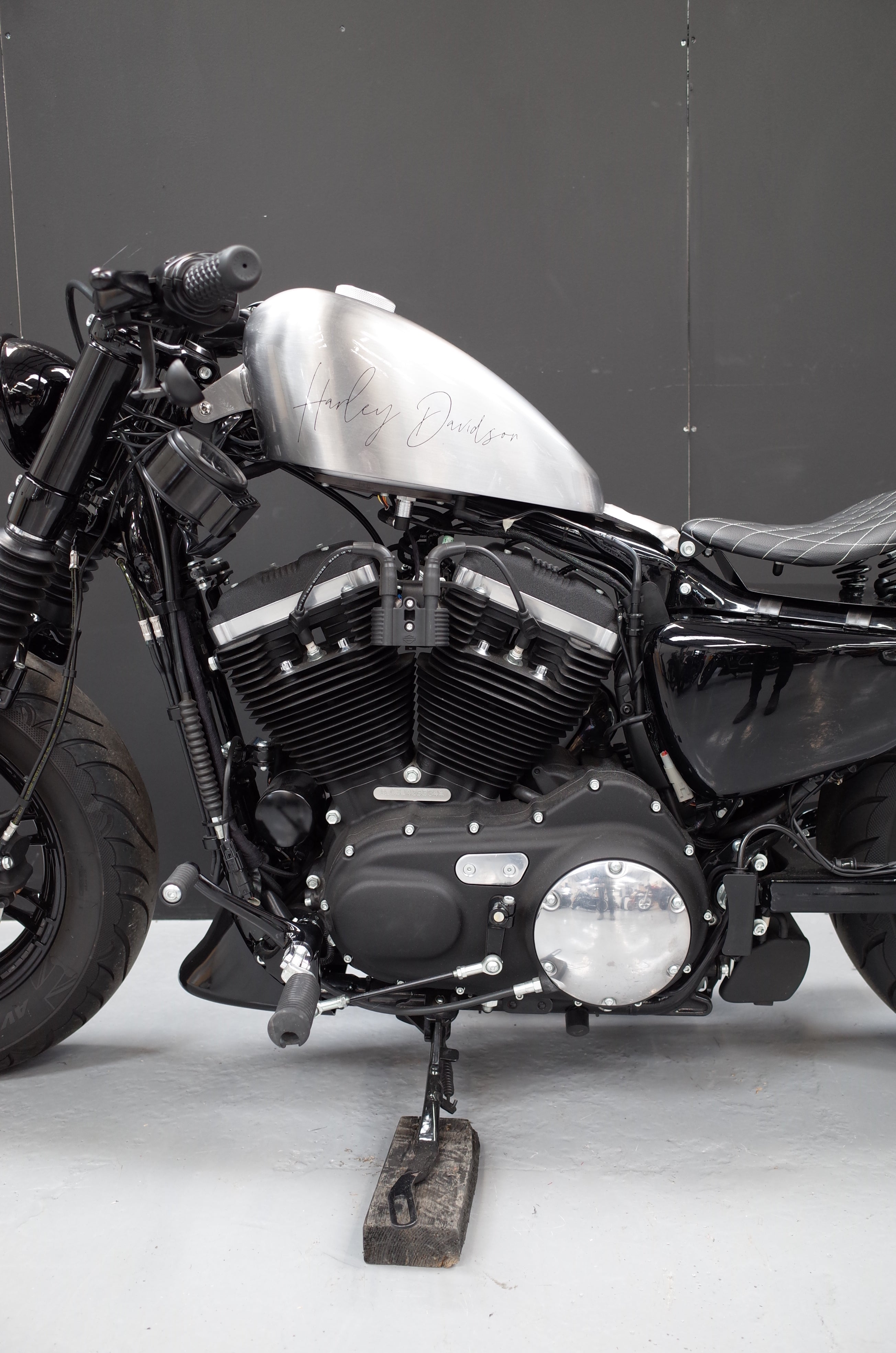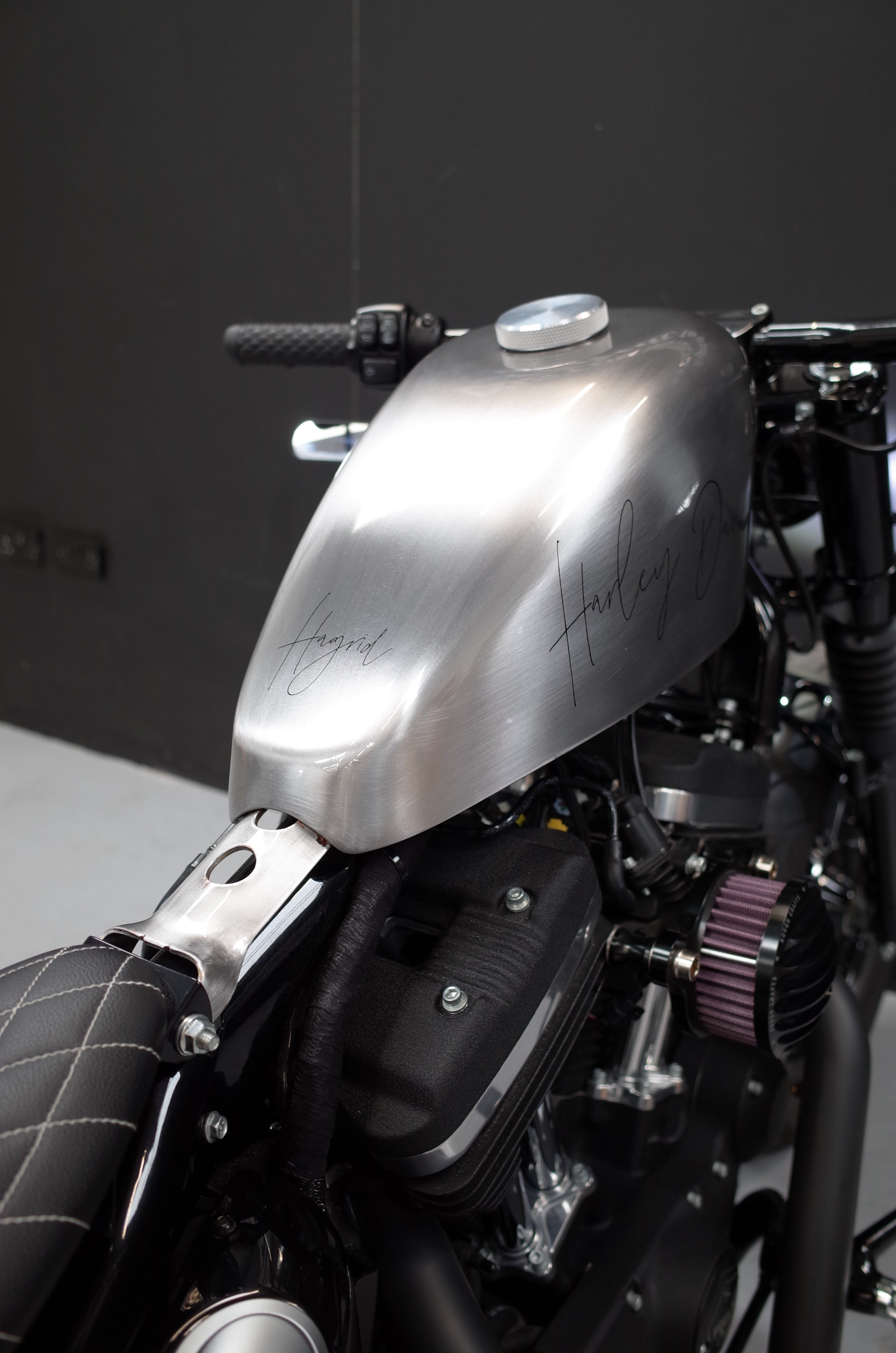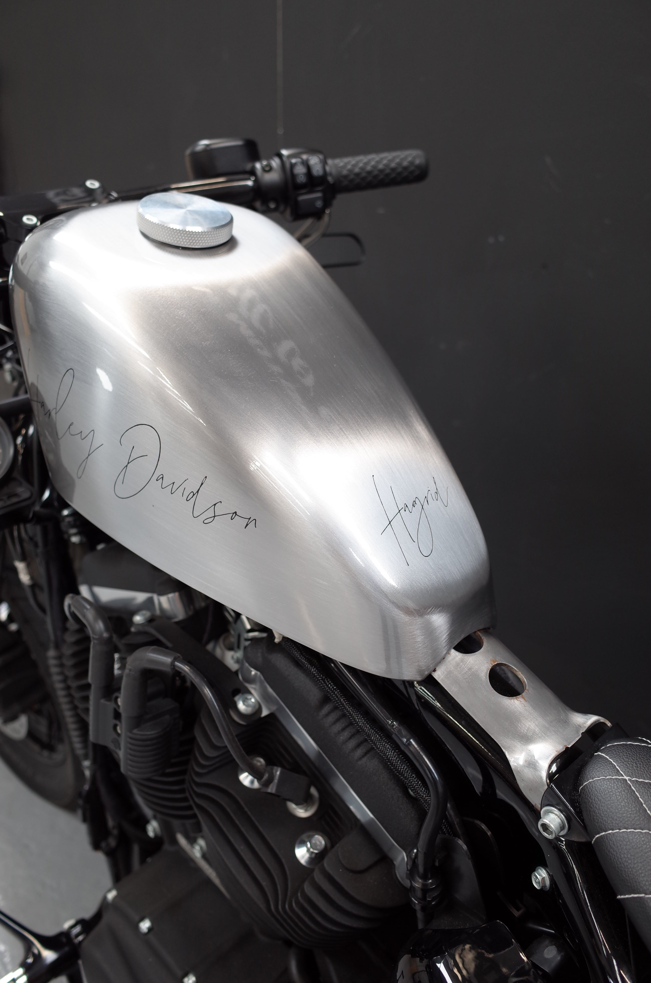 Bespoke built Harley 48 with Raw metal tank for a rugged finish.