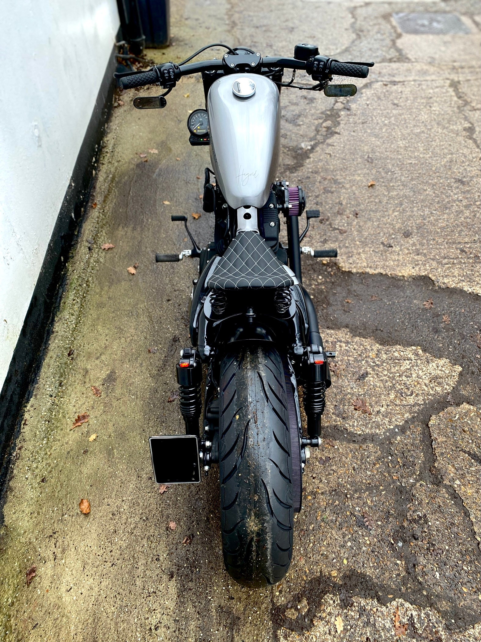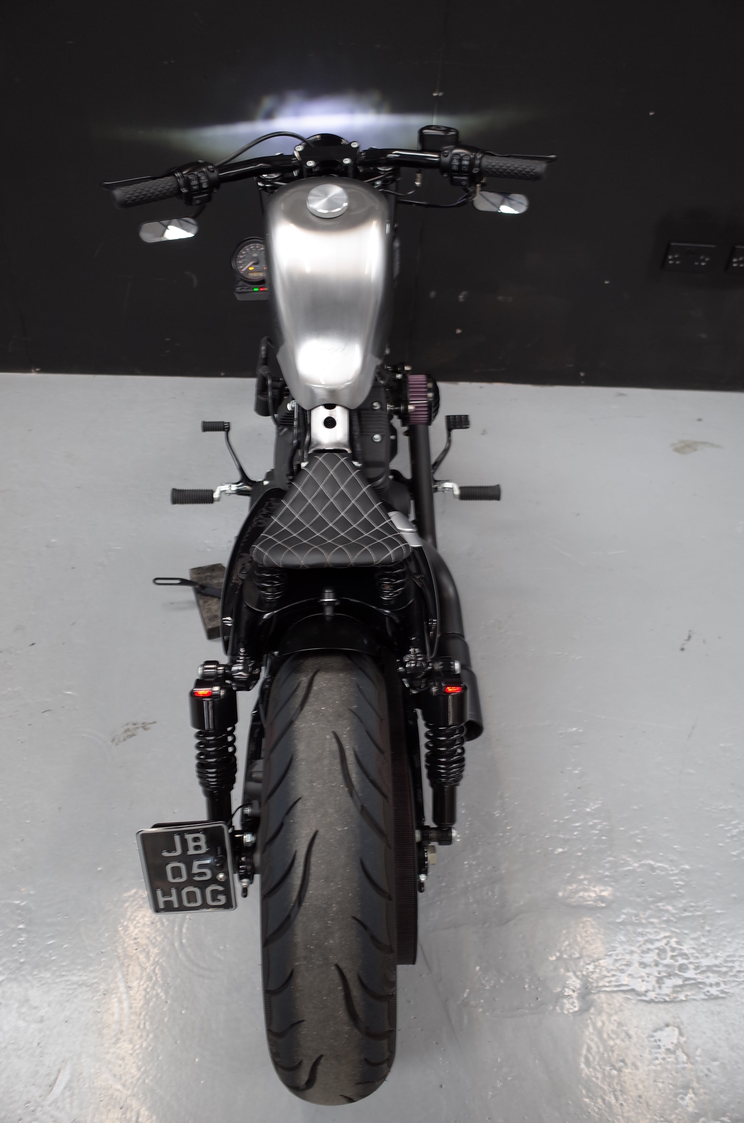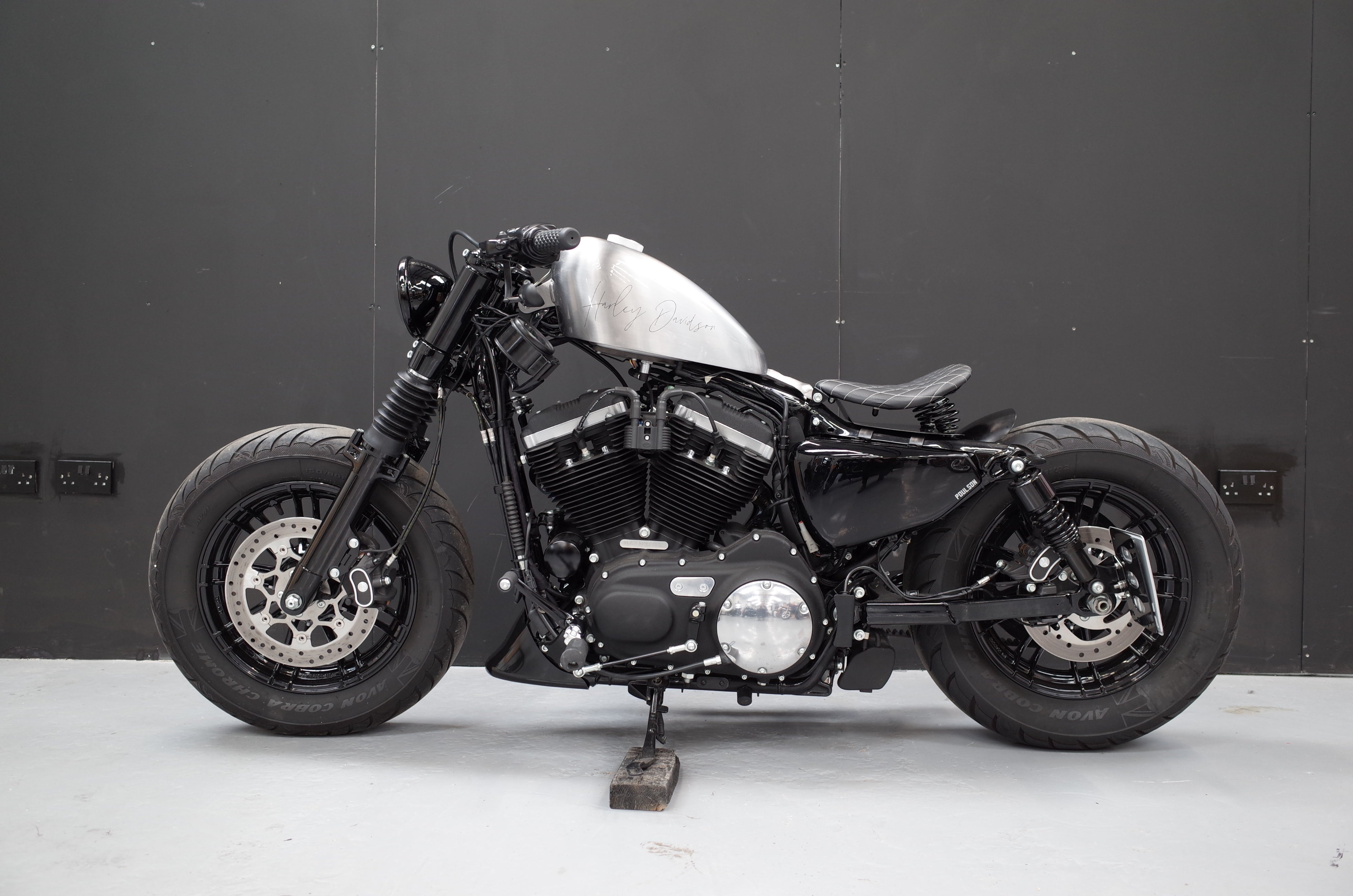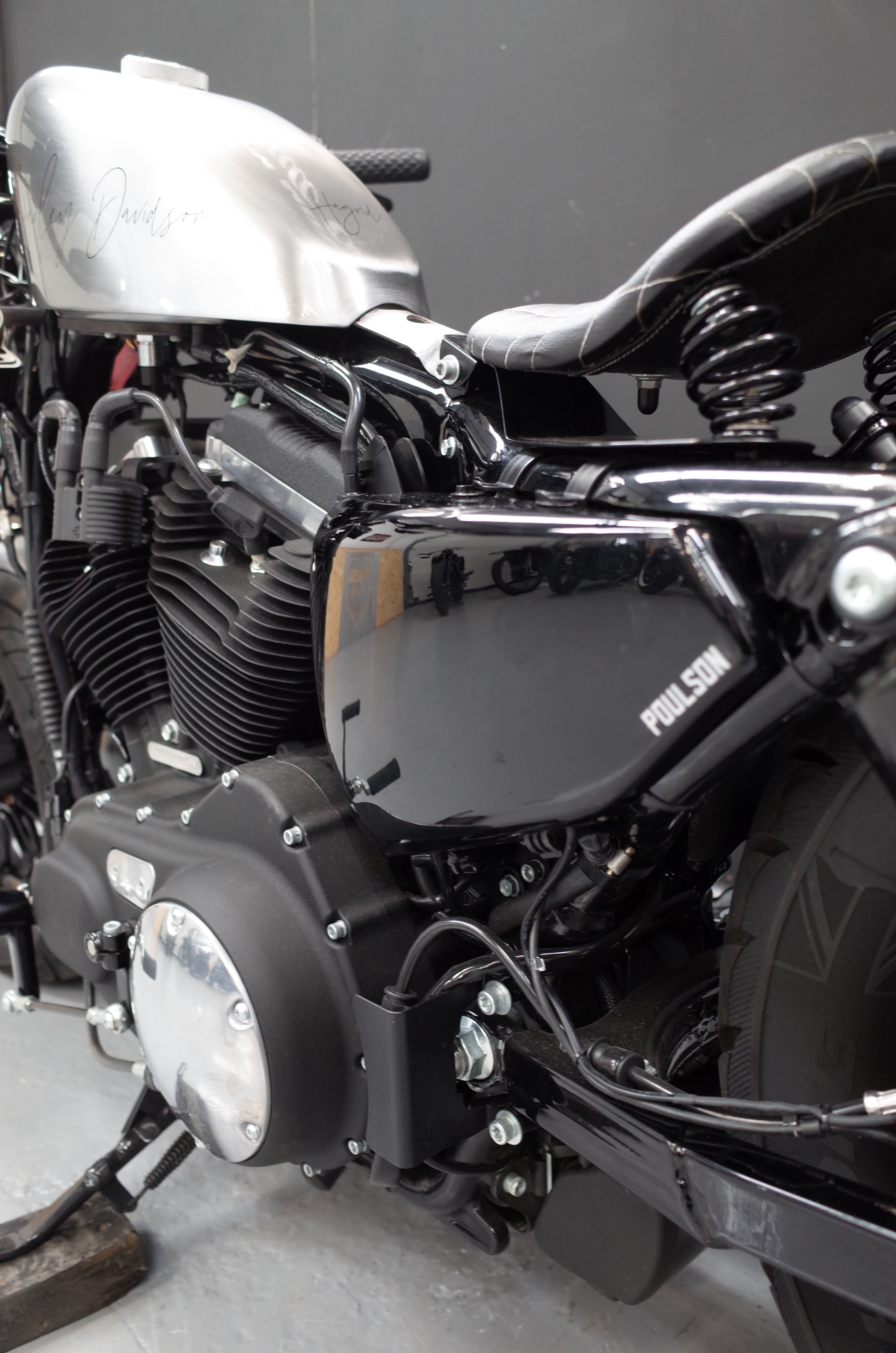 Bespoke built Harley 48 with Raw metal tank for a rugged finish.