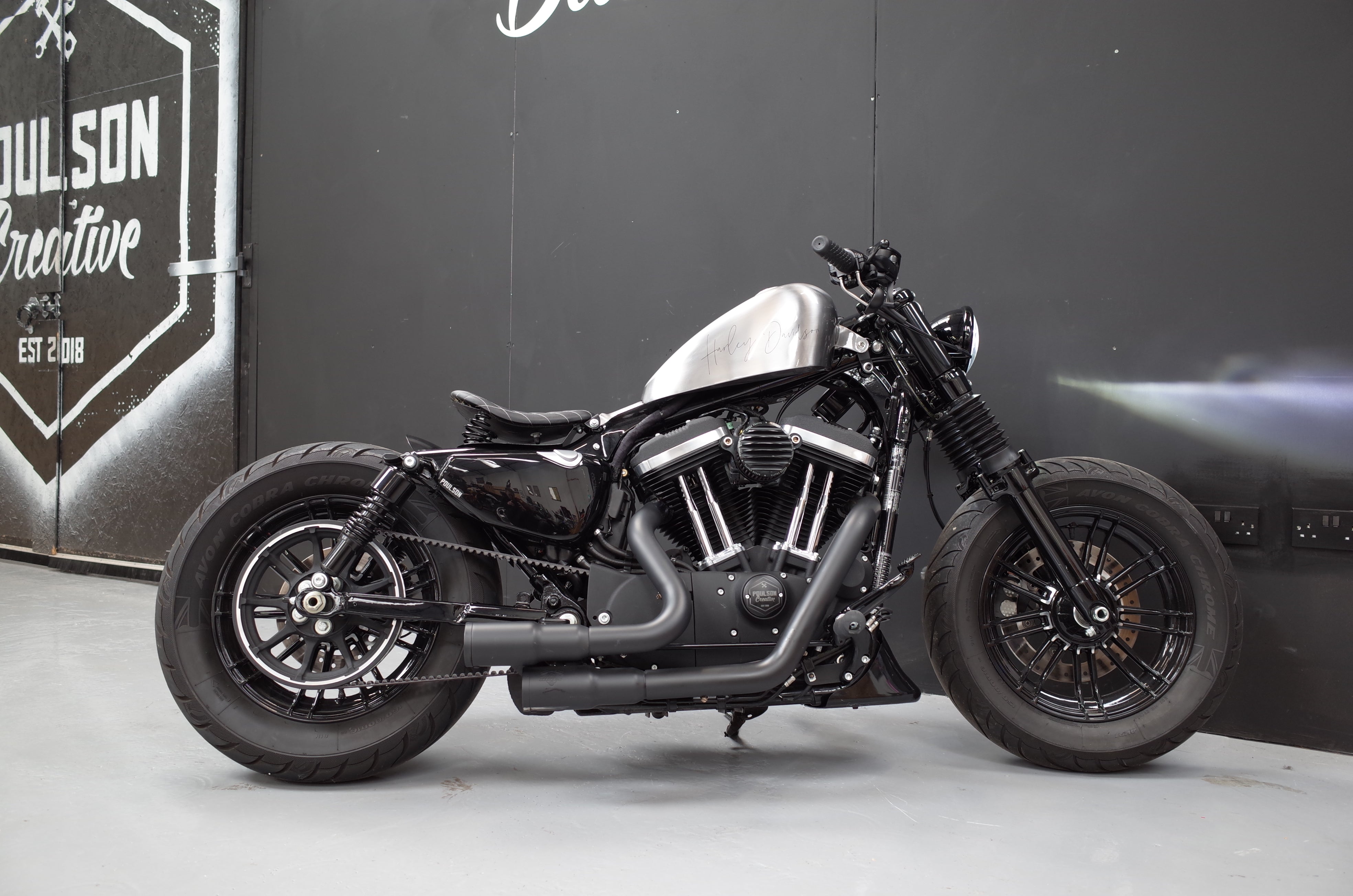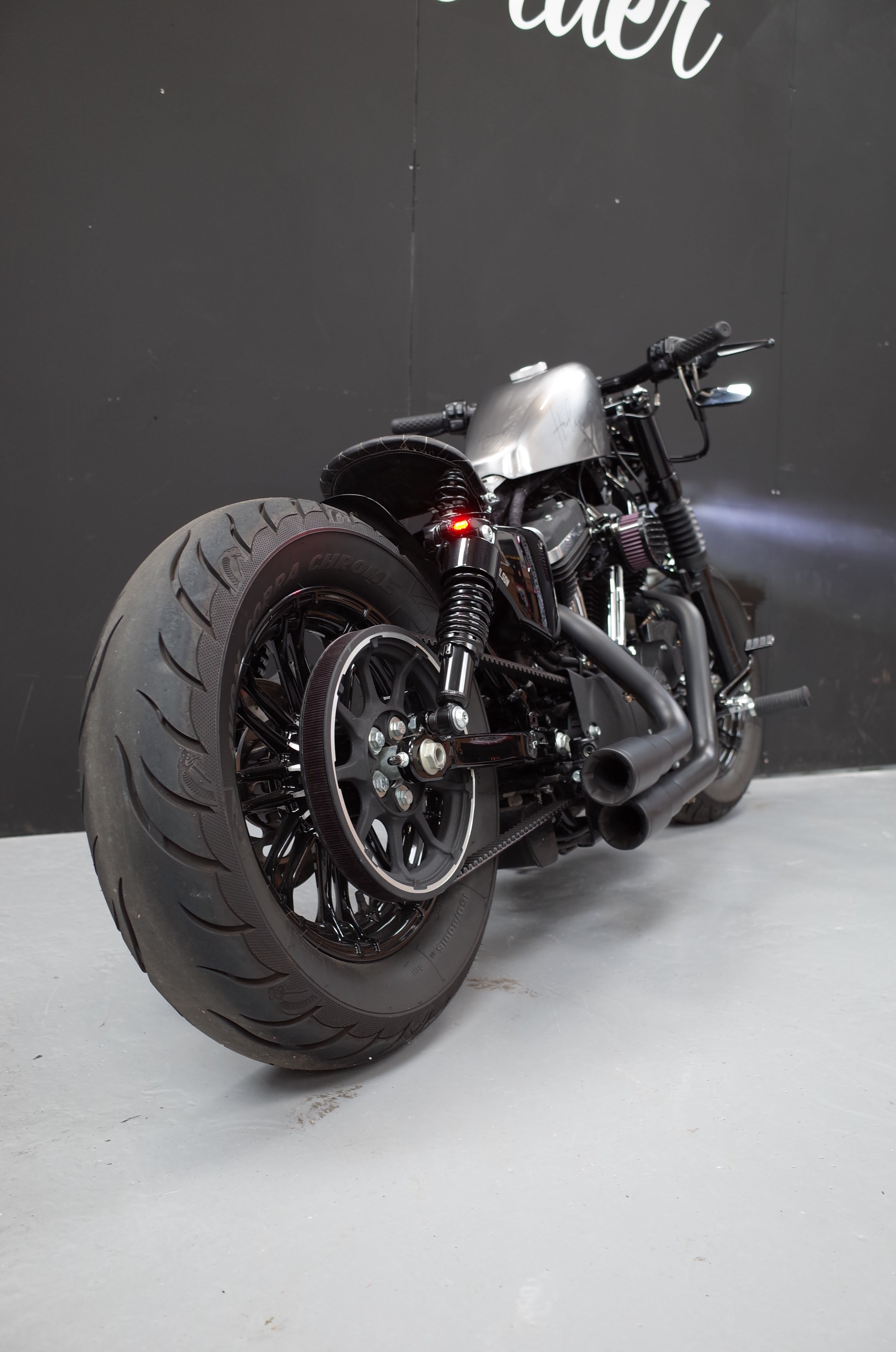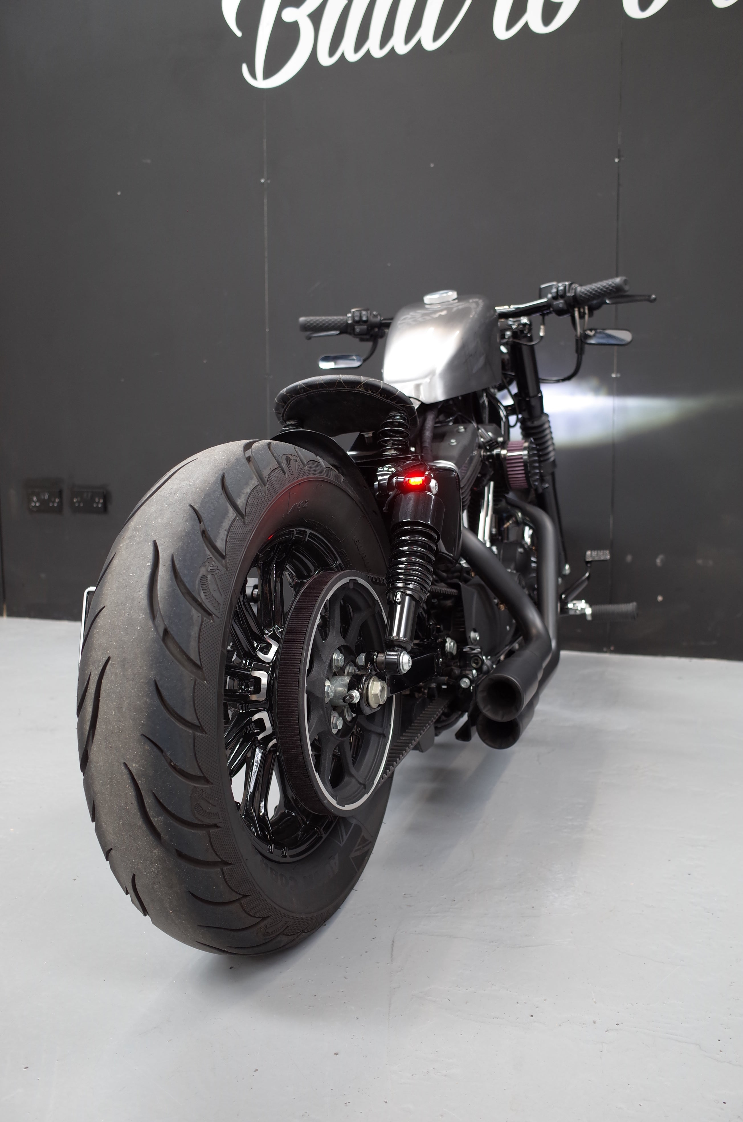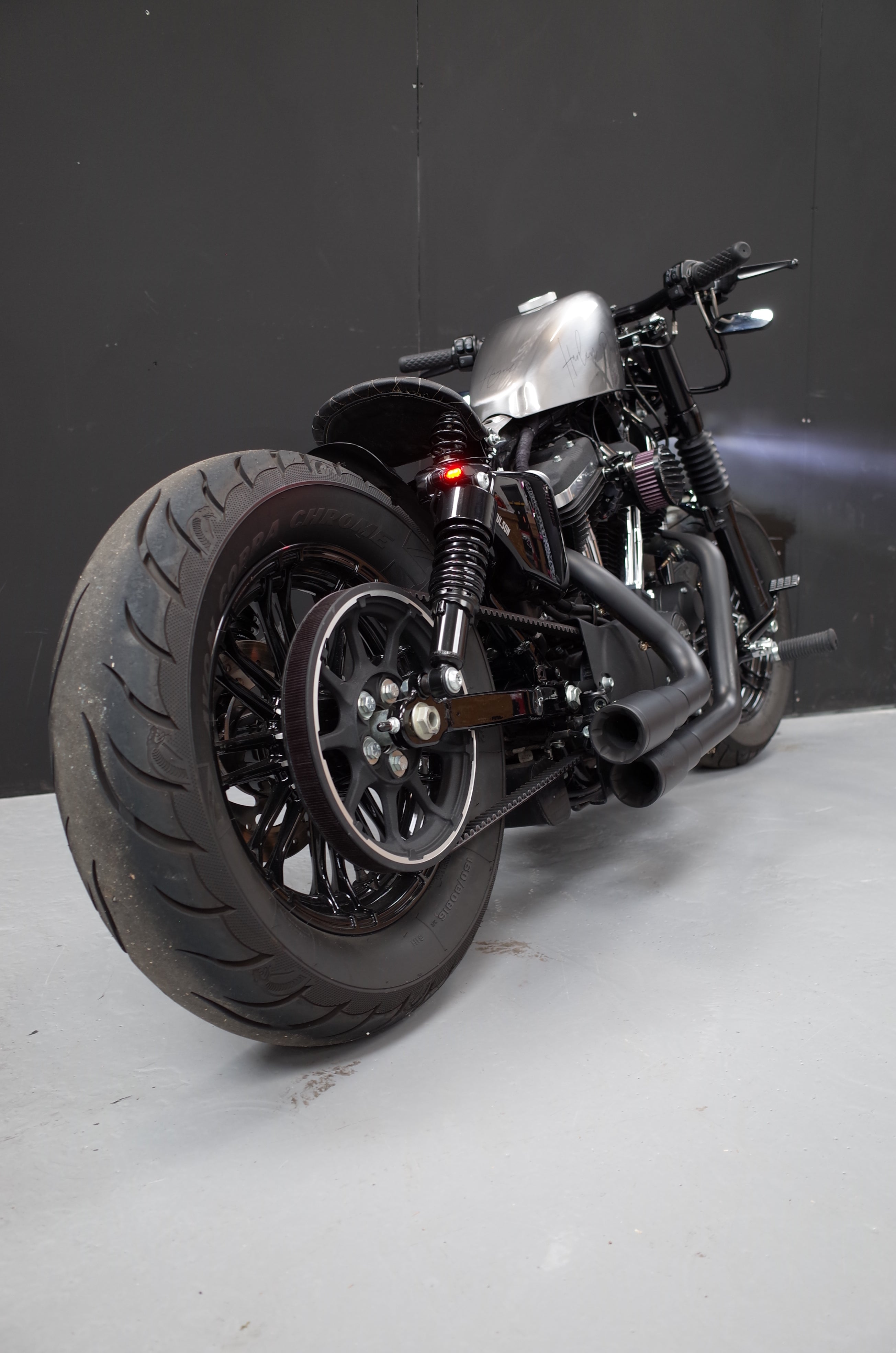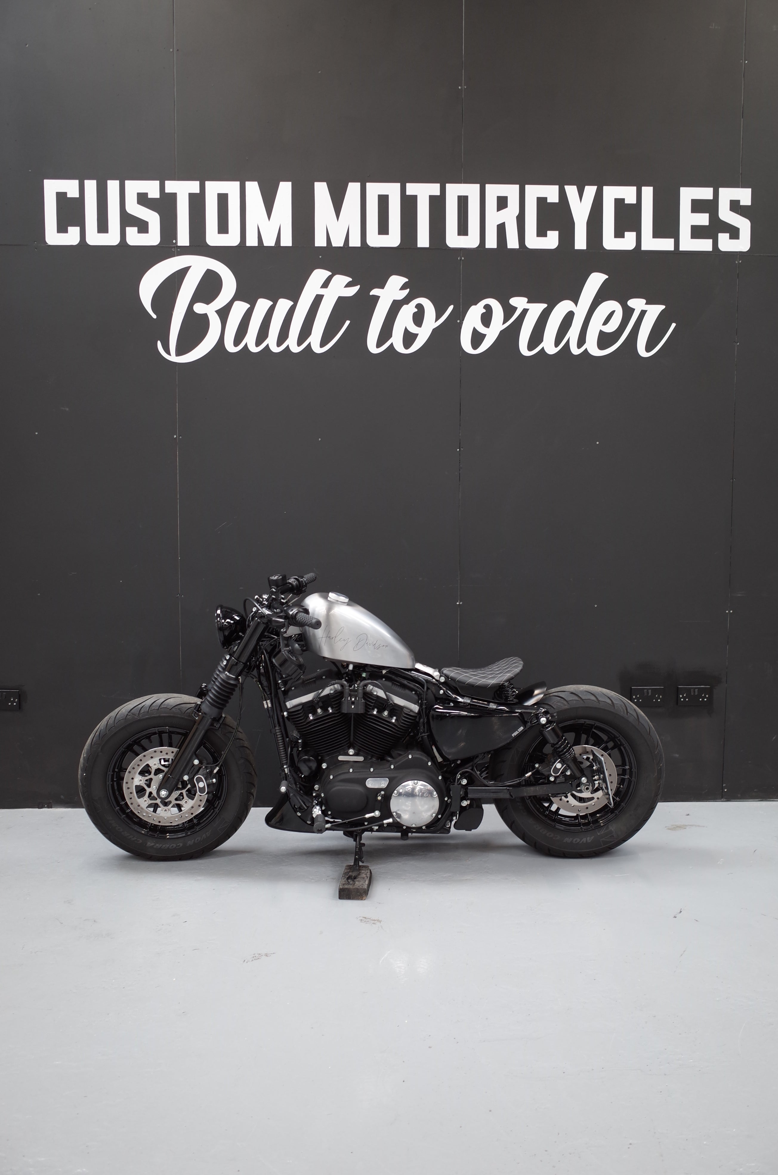 Bespoke built Harley 48 with Raw metal tank for a rugged finish.