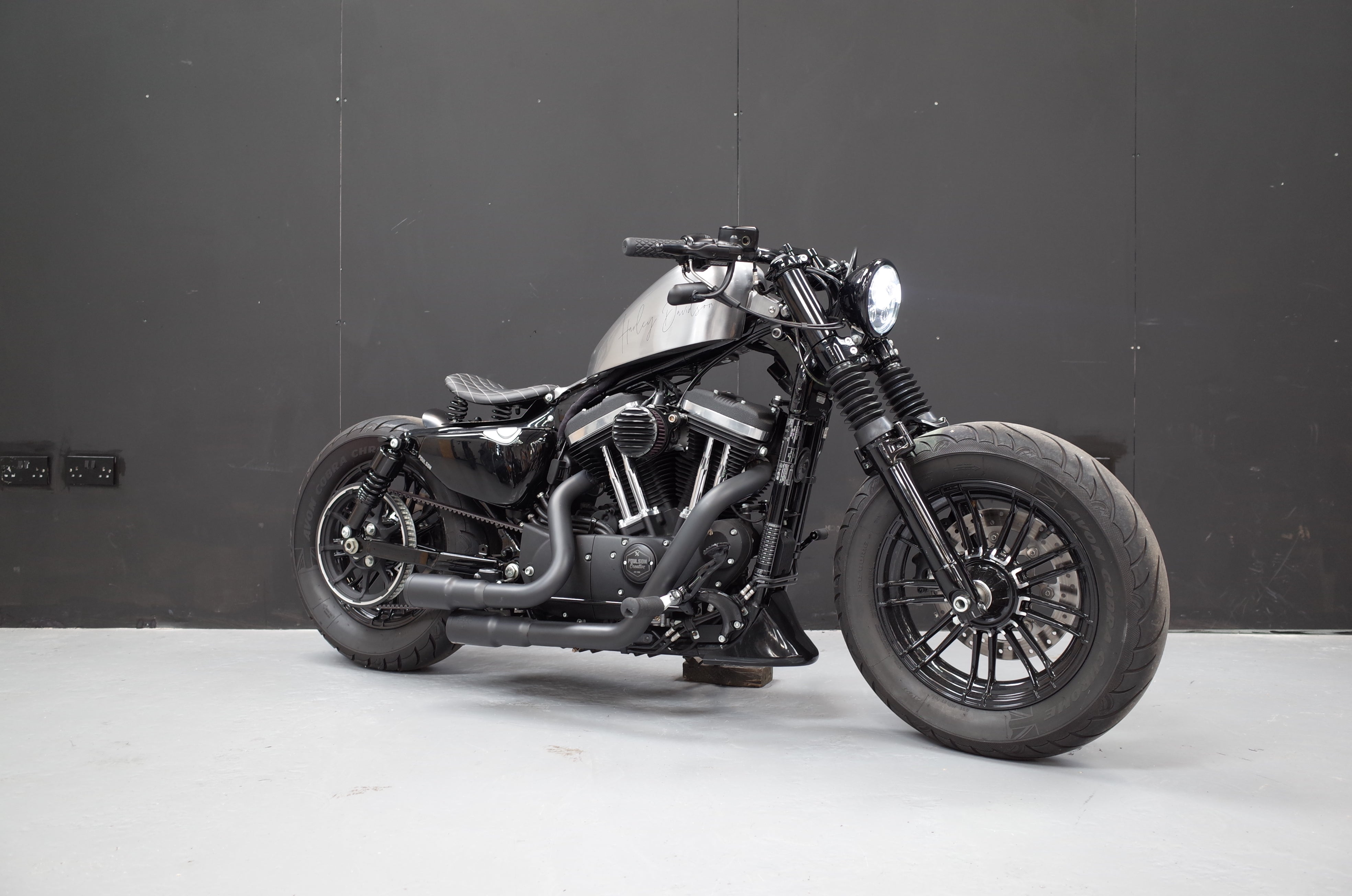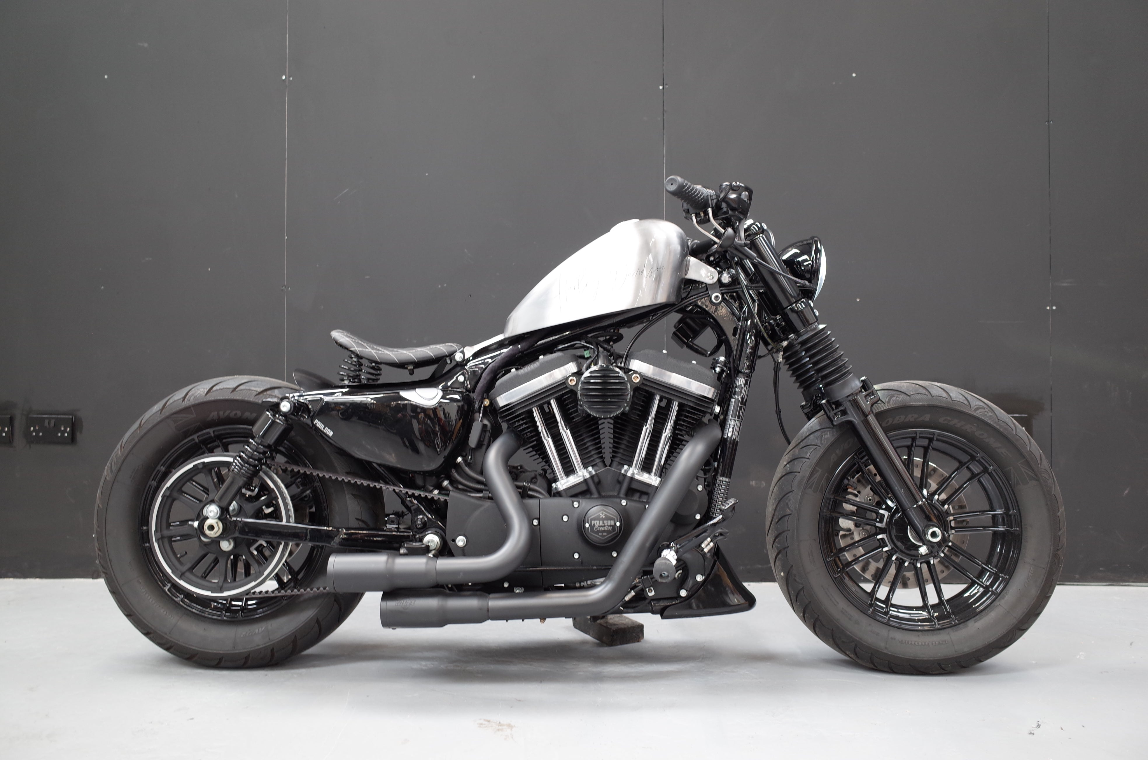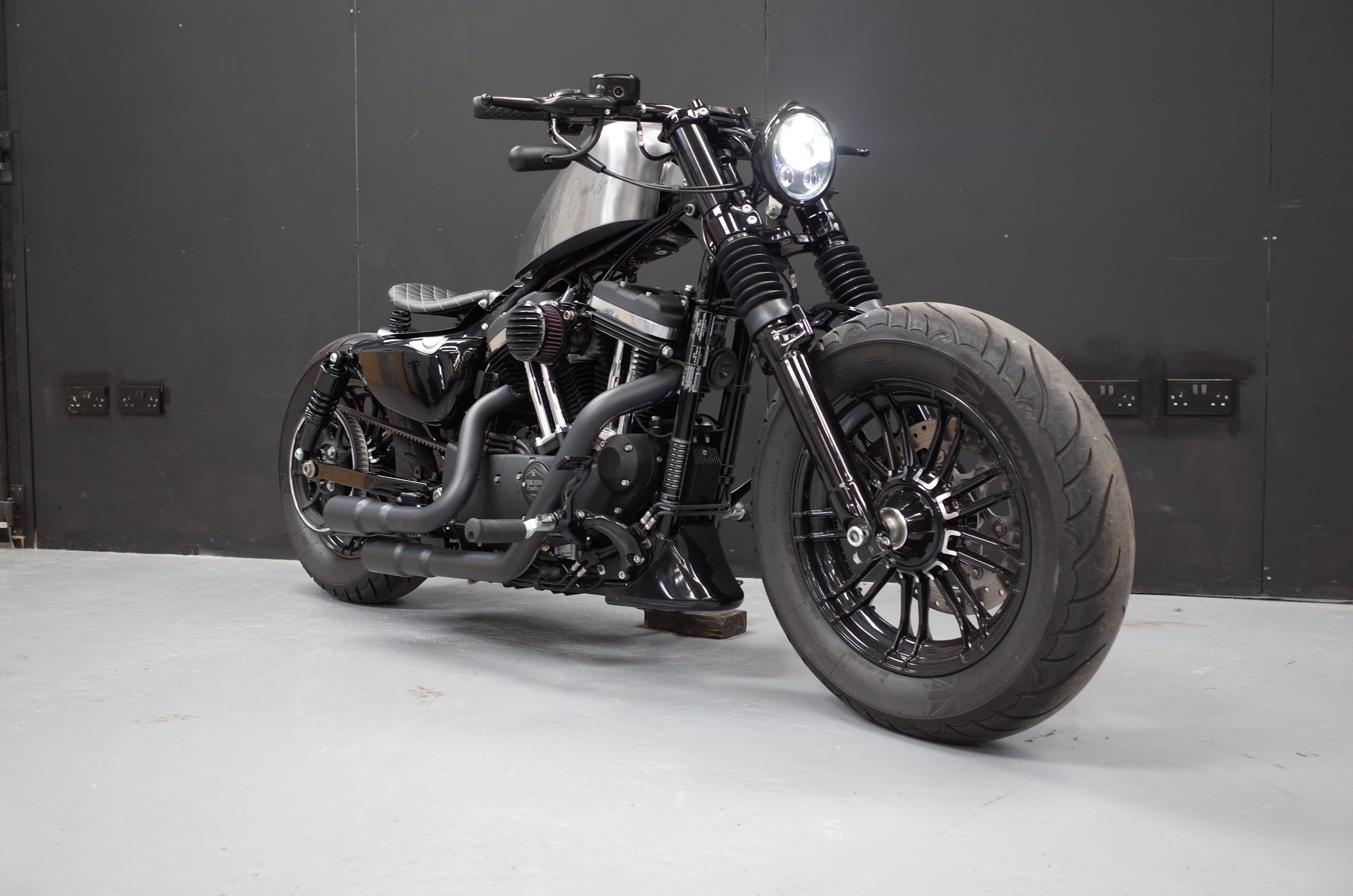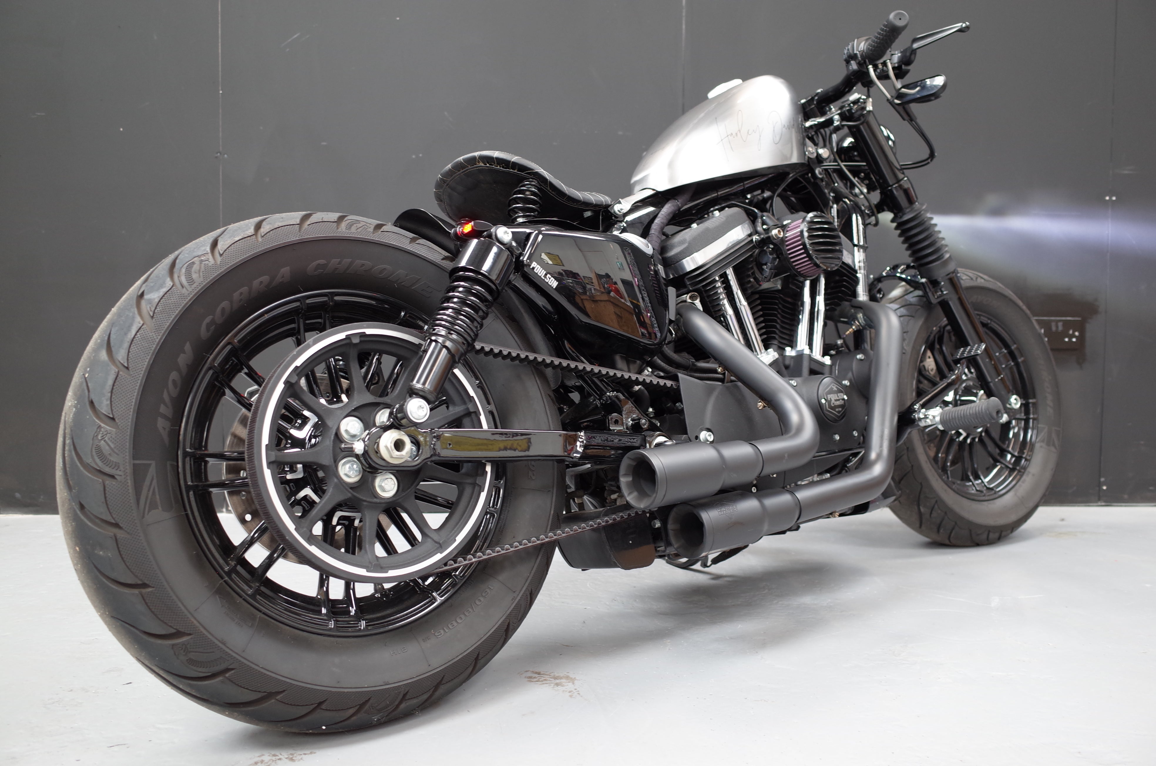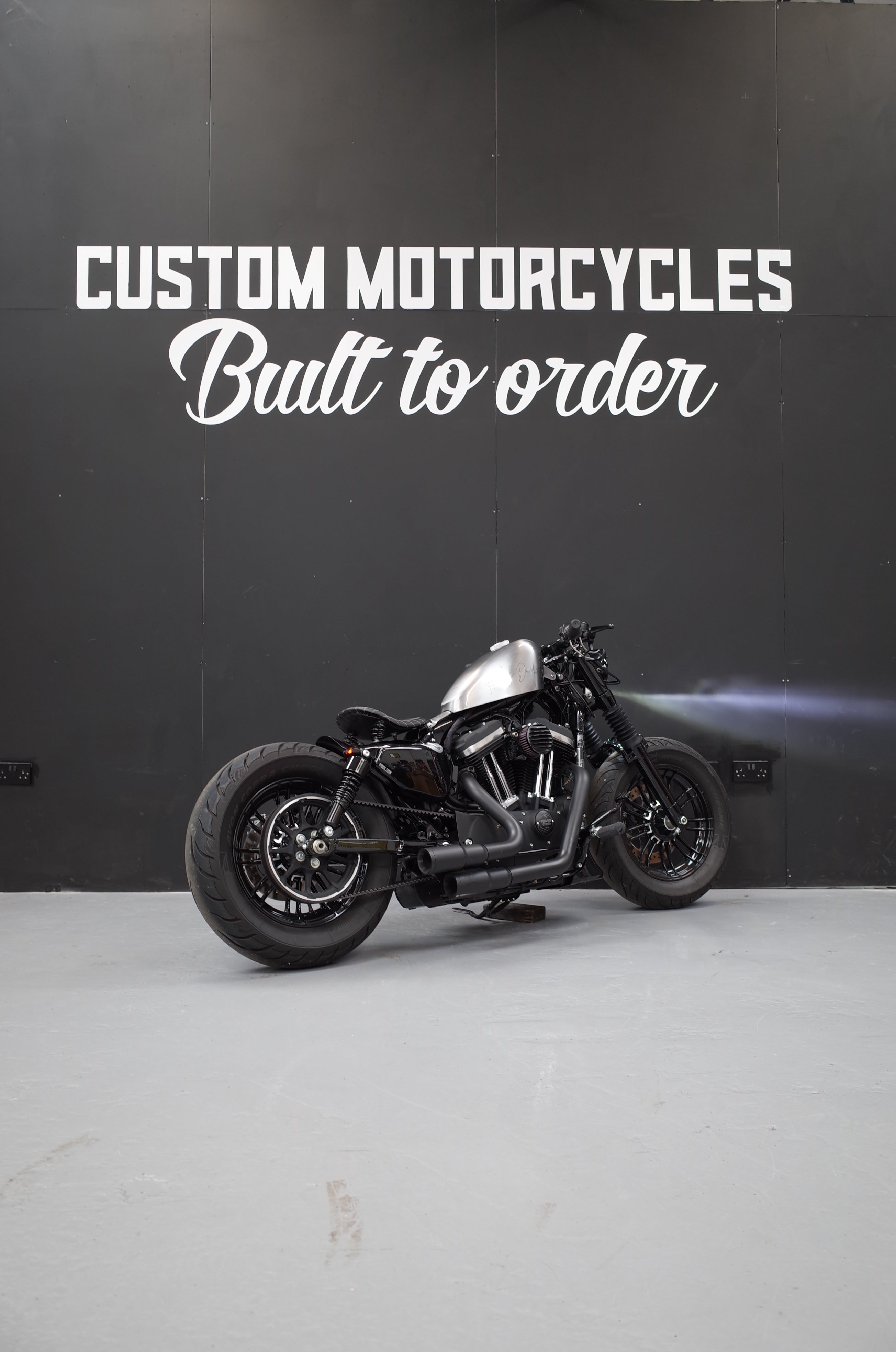 Bespoke built Harley 48 with Raw metal tank for a rugged finish.