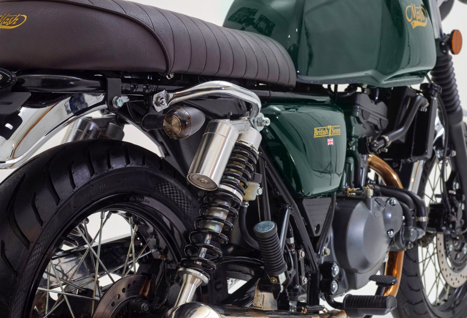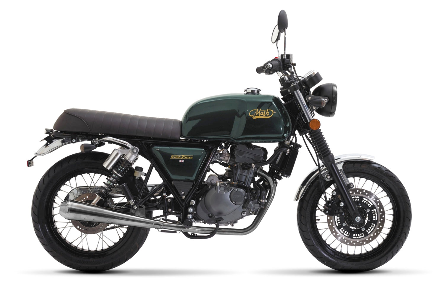 After the magical combination of black and gold on the Black Seven 125 we now bring you the British Seven 125. Its big Green tank is completed with the gold MASH-logo, they don’t only stand for a good design but also for making many miles! This has been made possible thanks to the new electronic fuel injection. The brakes are also fully up-to-date. With help of the 3 piston caliper and a combined braking system (70% front and 30% behind) the Brown Seven 125 makes sure to always stand still in time!.